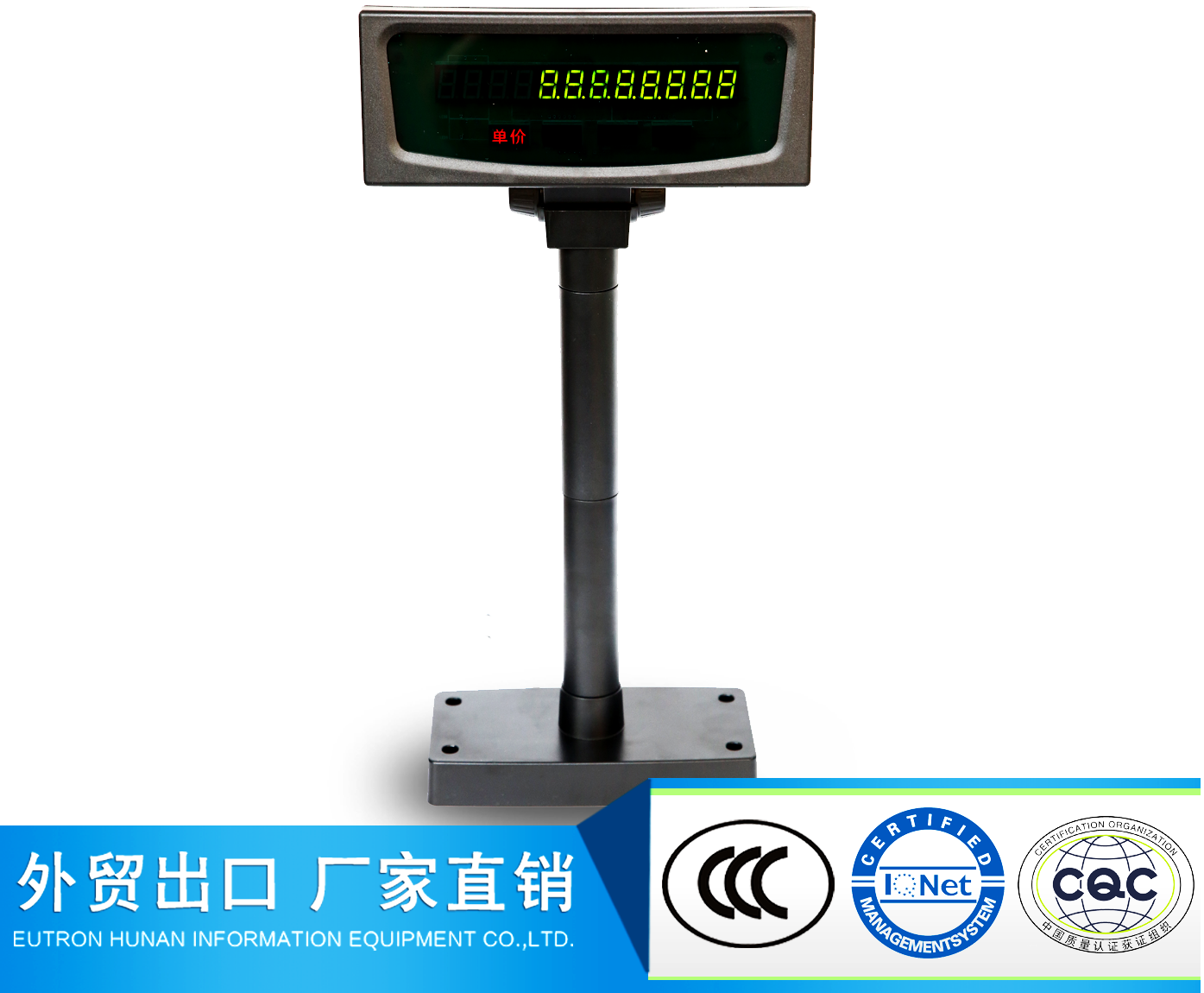 产品描述:LED8显示器采用8个8段LED数码管显示+4个状态指示灯显示,字体清晰,光线柔和。显示屏高度和角度均可调节。安装简单,携带方便,超市,市政,银行,医院,餐厨等均可适用。产品特征l 高亮LED数码管显...